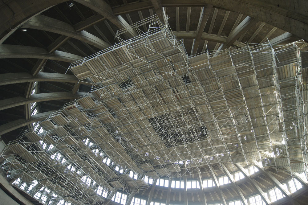 El sistema BRIO permite variar el ángulo entre dos torres de andamio adecuándose a la estructura curva a cubrir. Los huecos generados entre torres se cubren con plataformas de paso y barandillas de protección, garantizando en todo momento el acceso a la plataforma de trabajo con total seguridad.