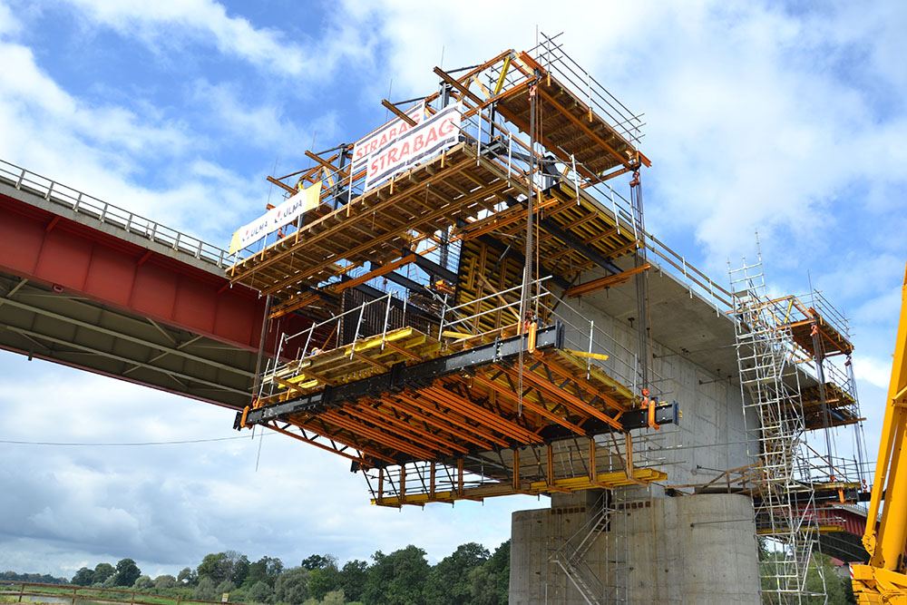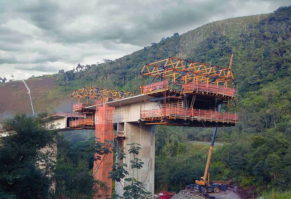 El carro de avance CVS es un sistema de encofrado para la construcción de tableros de puente en voladizo. Es ideal para la ejecución de tableros y arcos de puentes de gran luz o donde el apeo de la cimbra sobre el terreno resulte complejo.