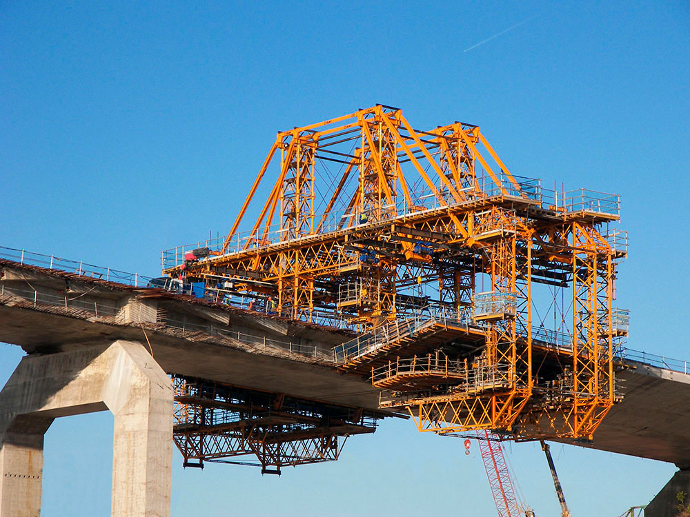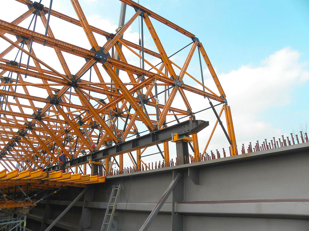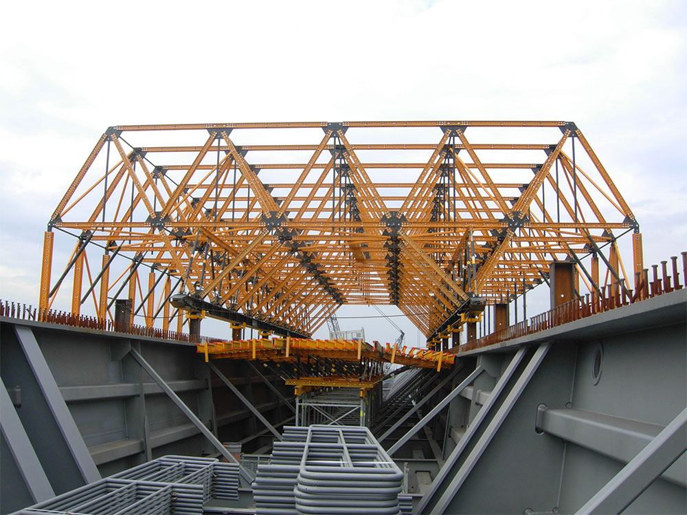 El carro de alas MK es un sistema de encofrado flexible y eficaz, enfocado principalmente a la construcción de puentes metálicos y puentes parcialmente prefabricados, donde es necesario hormigonar las alas del tablero de puente.