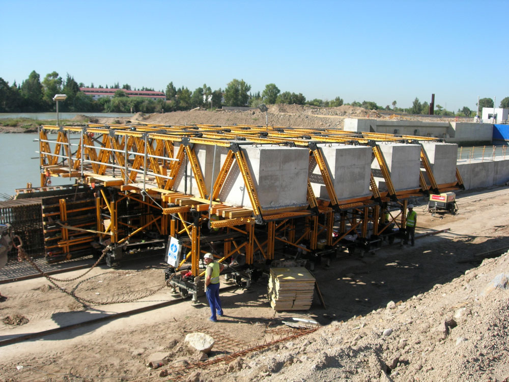Carro móvil para encofrado de muro, diseñado para labores de encofrado/desencofrado de muros de hormigón de gran longitud a una o dos caras. Se trata de una solución idónea para ejecutar muros repetitivos en construcciones como estaciones de metro, esclusas, galerías, canalizaciones etc.