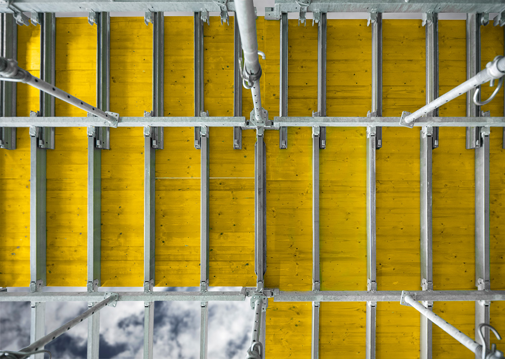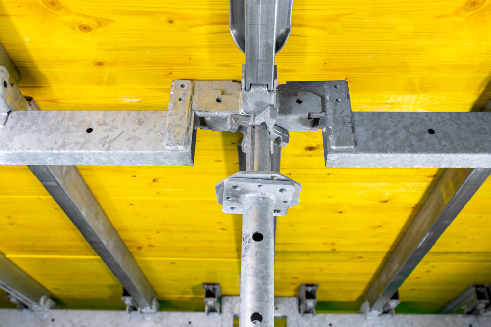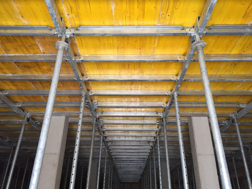 - Baja repercusión de puntales: 0,4 puntales/m² durante el hormigonado y 0,2 puntales/m² después del desencofrado.