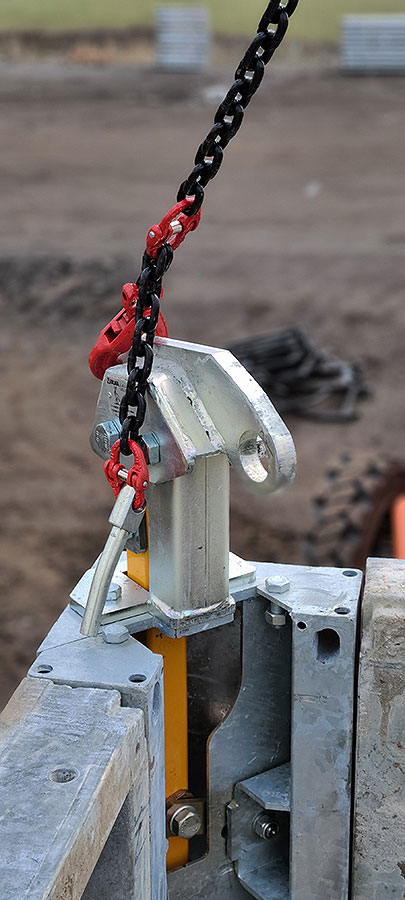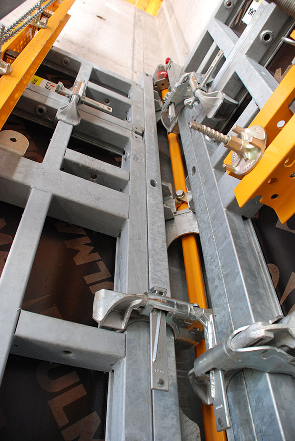 - Accionamiento con grúa: Un solo movimiento vertical de grúa es suficiente para desencofrar, izar y trasladar todo el conjunto.