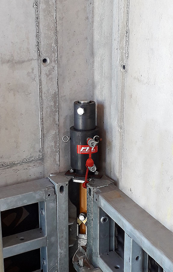- Accionamiento hidráulico: Pulsando simplemente un botón todo el sistema cambia de la posición de encofrado a la de desencofrado y viceversa.