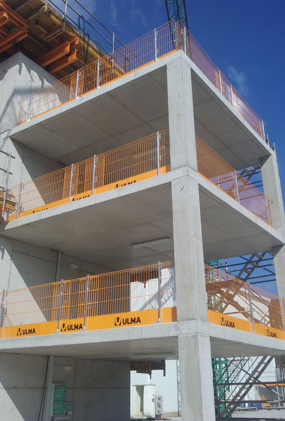 La barandilla MBP es un sistema de protección temporal anti caída, concebido para ser montado tanto en estructuras de hormigón como en los sistemas de encofrado ULMA.