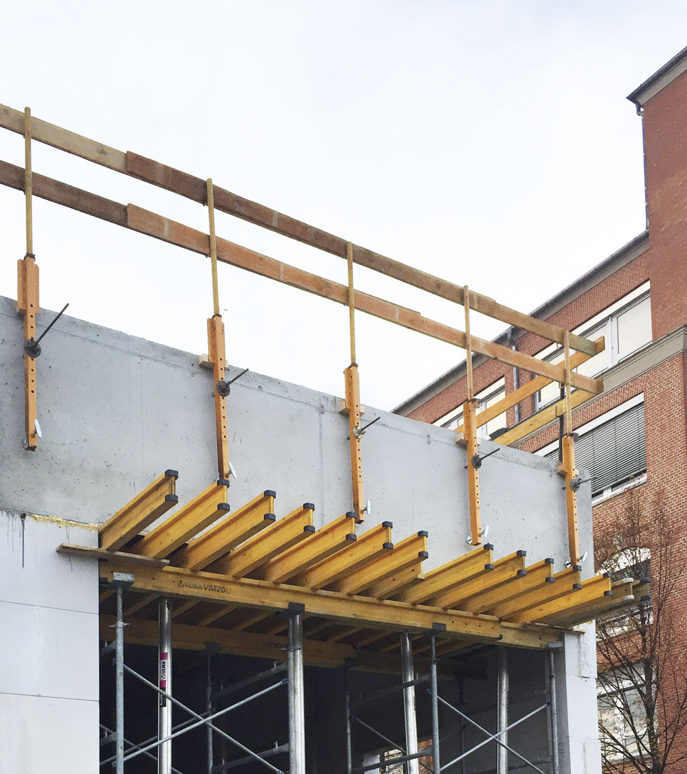 Barandillas de seguridad diseñadas para garantizar la protección colectiva en los bordes de forjado, de montaje sencillo y rápido. Optimizadas para su aplicación en superficies horizontales o inclinadas, se combinan con los encofrados de losa de ULMA pudiendo proteger hasta los bordes de forjado más complicados del edificio.