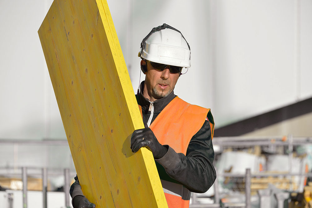 Compuesto por tres capas de abeto adheridas. Encolado AW 100 realizado según norma ÖNORM B3023. Fibras de primera y tercera capa (A) perpendiculares a las de la segunda capa (B).