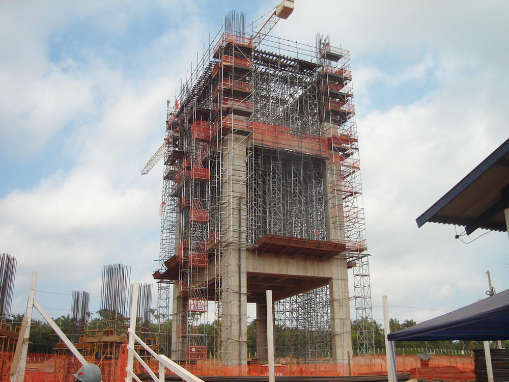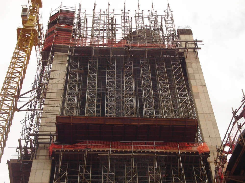 La estructura vertical de uno de los edificios industriales superaba los 110 metros de altura por lo que se emplearon torres de T-60. Está diseñada para cubrir considerables alturas así como el apeo de grandes losas, ejecutadas en este caso con un sistema de Vigas BTM.