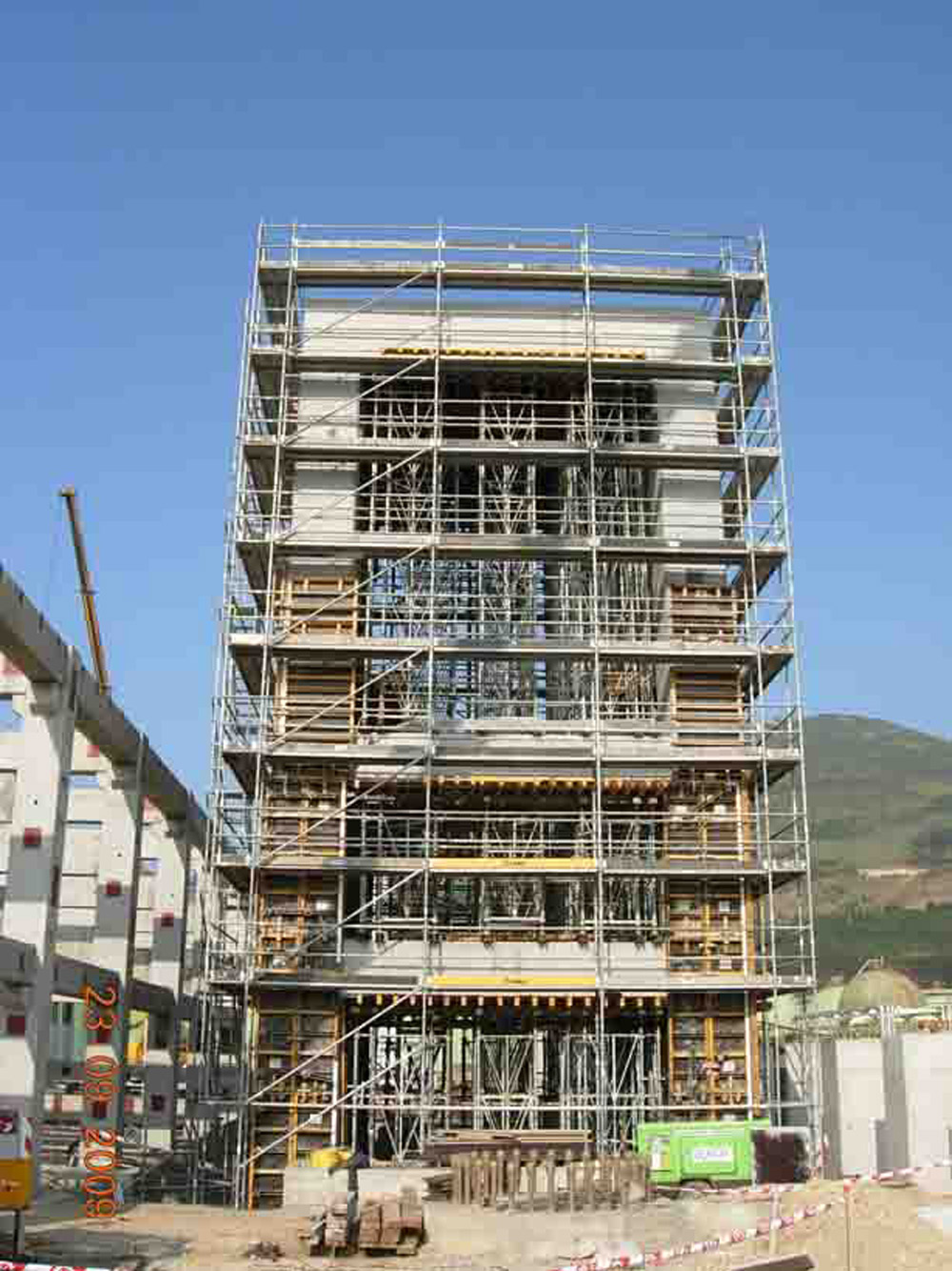 Como sistema de apeo de cargas verticales y soporte del encofrado para losas ENKOFORM HMK, se utilizaron cimbras que garantizaron robustez, seguridad, así como una gran flexibilidad de utilización. De hecho, a medida que avanzó la obra, la estructura de carga creció de un piso a otro.