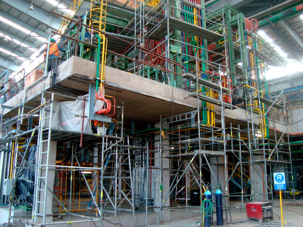 ULMA satisfacía al 100% las exigencias de ergonomía, carga y seguridad solicitadas. Por ello, se convirtió en el único proveedor de Andamio Multidireccional en todo el proceso de construcción y colocación de equipo, además de asumir los trabajos de mantenimiento de la planta.
