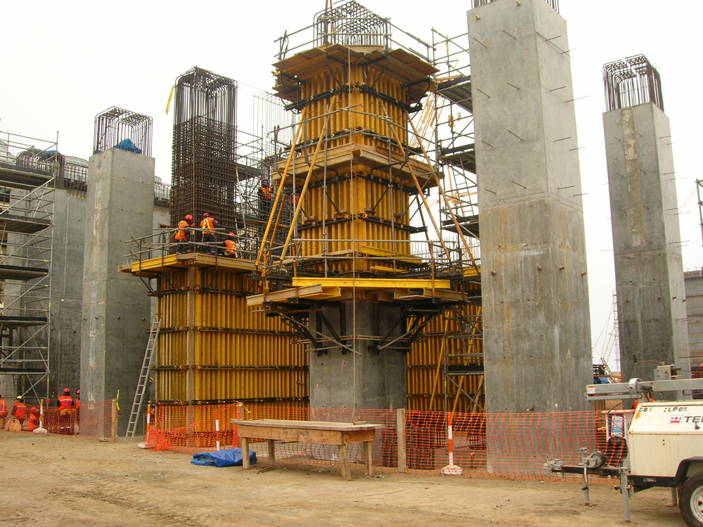 Se proyectó una plataforma ubicada debajo de cada uno de los ejes del muelle con el Sistema BRIO. Asimismo se ejecutó una estructura de andamio en voladizo, con una longitud de 35 m, para llevar a cabo labores de pintura, soldadura etc. Este andamio fue rotando desde el primer eje hasta el último. Ha sido el primer proyecto en Perú con andamios en voladizo de estas magnitudes.