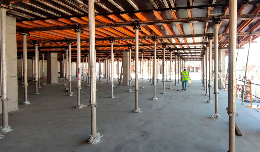 ULMA ha suministrado una amplia gama de encofrados donde el sistema de encofrado de mesas ha jugado un papel fundamental en el desarrollo de las losas, ya que aportan una gran capacidad de carga y alto rendimiento. 70.000 m² de losas realizadas con sistemas de MESAS VR y 9.780 m² de muros a dos caras principalmente con sistema ORMA.