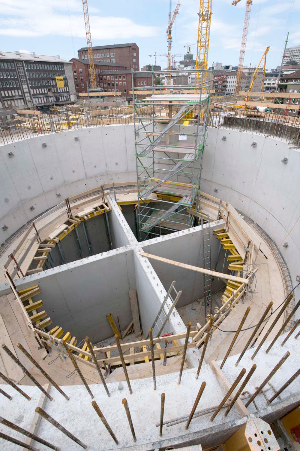 El encofrado vertical ORMA se ajustó con precisión a la ejecución de muros y huecos de escaleras. Su amplia gama de paneles permite la formación y unión sencilla de grandes conjuntos, además de ejecutar esquinas distintas a 90º con pocos accesorios.