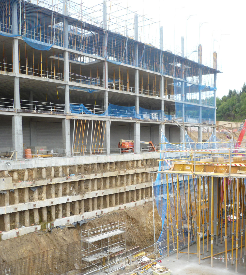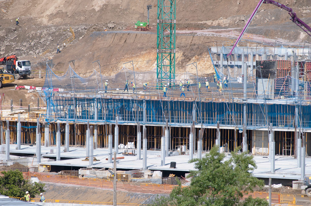 Para los forjados se opta por la clásica solución de encofrado Rapid y Recub, con el sistema de desapuntalado-reapuntalado, donde se consigue eliminar una importante cantidad de puntales y mejorando la colaboración de la estructura en cuanto a transmisión de cargas.