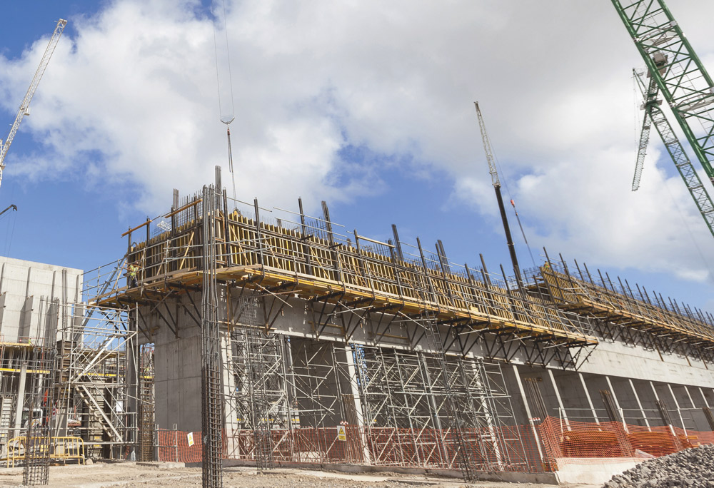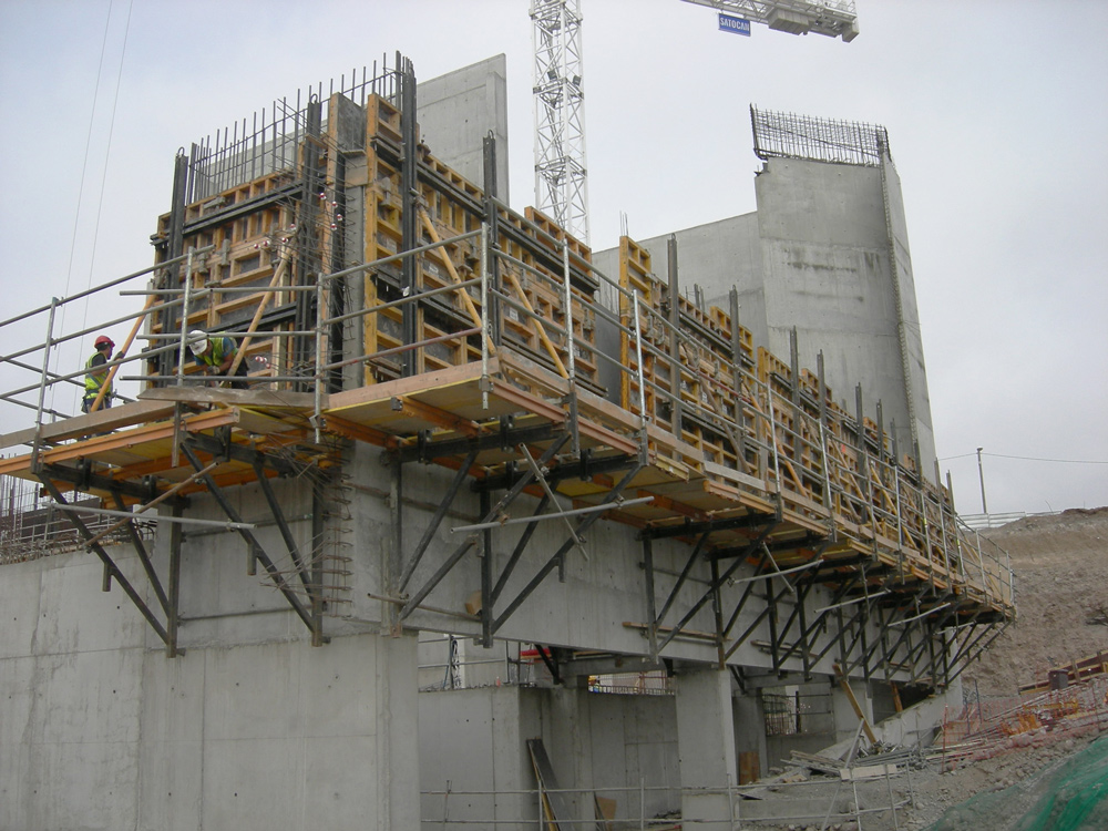 - Exterior: paños de encofrado de 21 m2 sobre la consola de trepado.