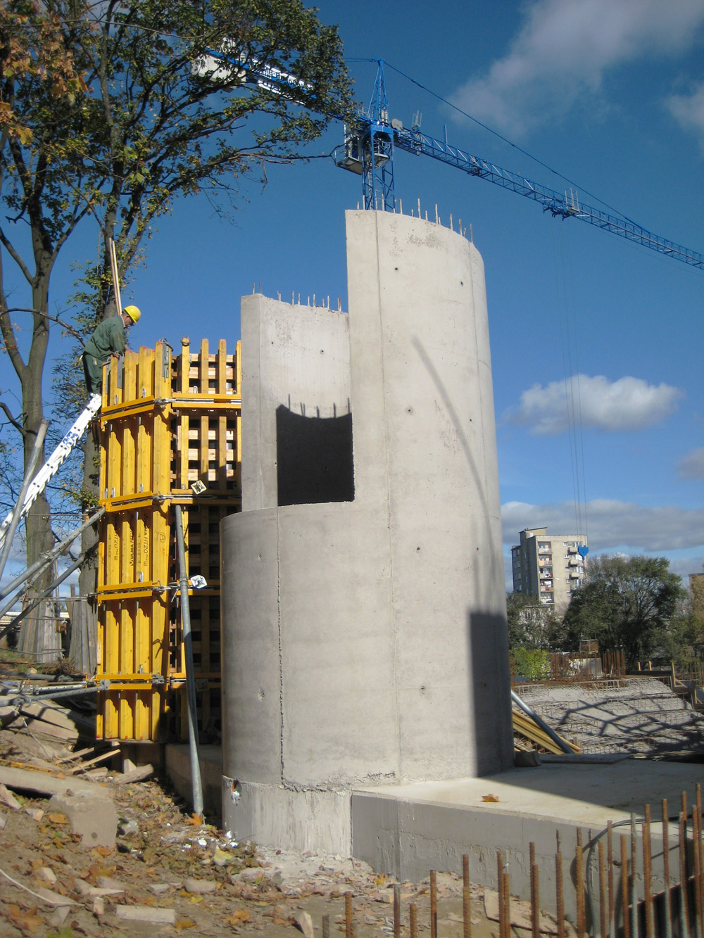 Además se realizó una viga de gran canto, 80 x 120 cm de sección, a 22 m de altura utilizando un encofrado de forma como fondo de viga.