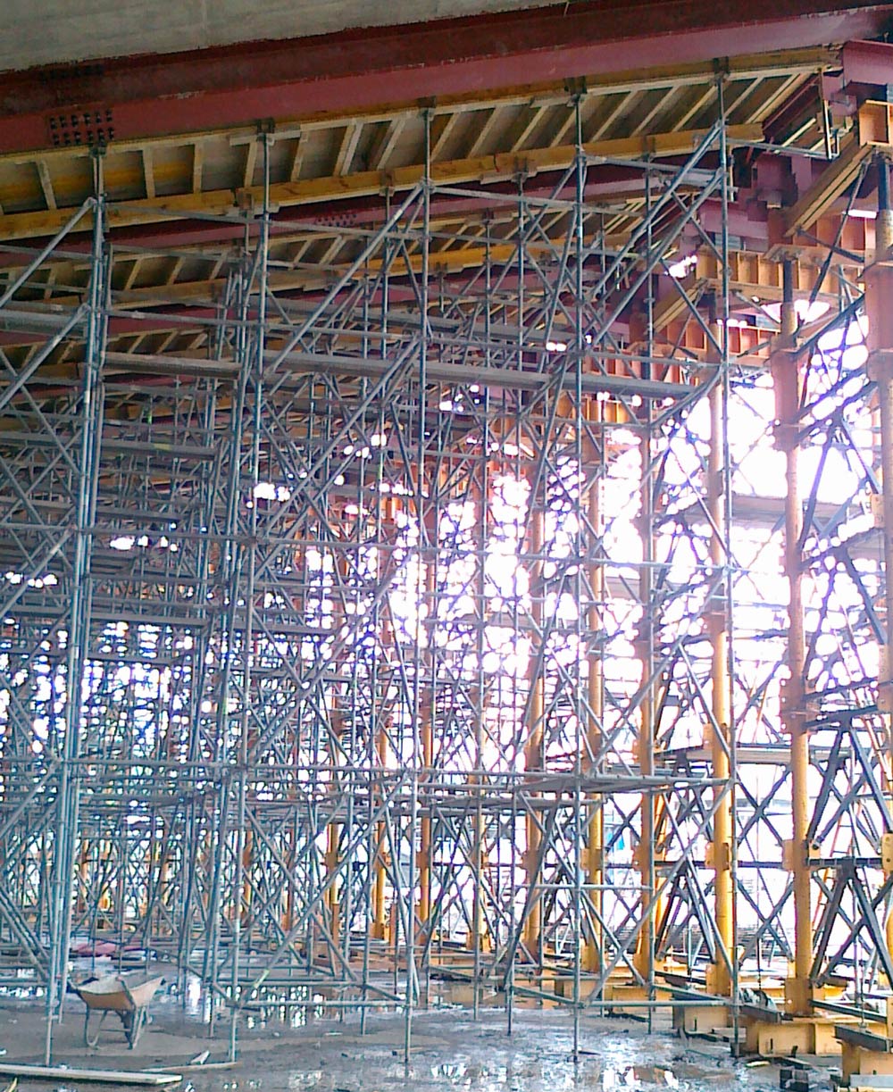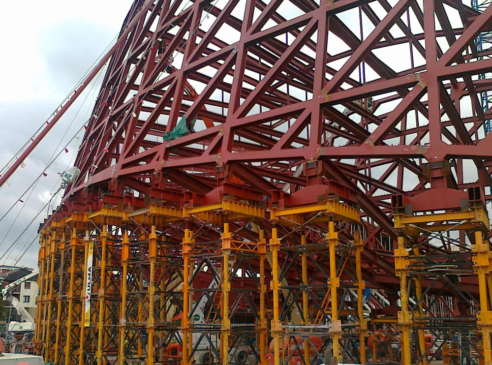 Para el apeo de la estructura metálica circular del edificio Orona Zero se recurrió a la cimbra de grandes prestaciones T-500.