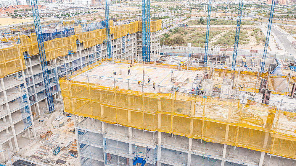 Además, el sistema se ajusta al máximo al encofrado horizontal, minimizando huecos, resolviendo esquinas, retranqueos y terrazas. Incluso cuando se han requerido vuelos respecto de la estructura (hasta un máx. de 2 m).