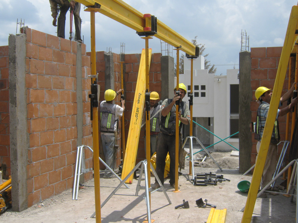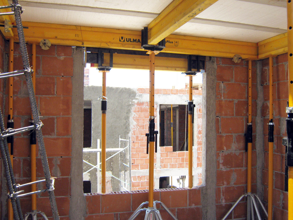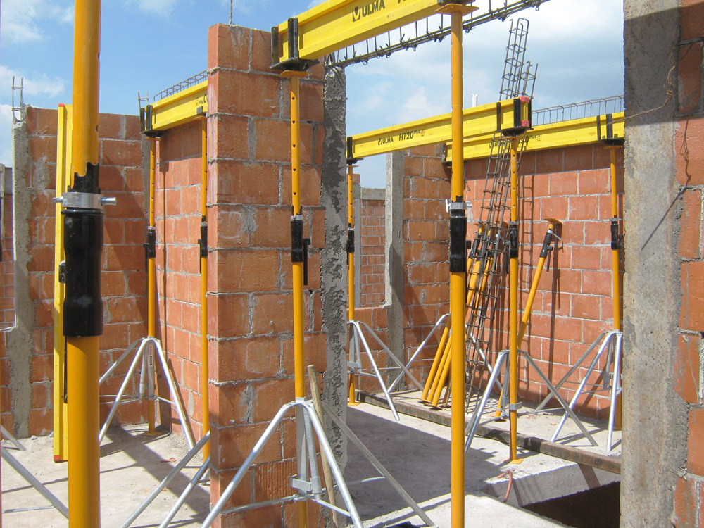 Las viviendas, con losas de vigueta y barandilla, se encofraron con ENKOFLEX. Al tratarse de un encofrado formado por vigas independientes, el sistema es versátil, de ahí que pueda adaptarse de forma adecuada a losas irregulares. Como sistema de apeo se empleó el SP junto con el Cabezal Doble VR; estructuras diversas como los antepechos con sistema COMAIN. Este encofrado es el adecuado en cualquier tipo de obras en la que se requiera de un buen acabado desde pequeñas hasta grandes superficies.