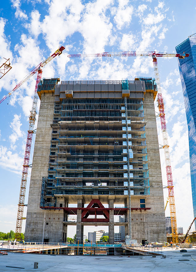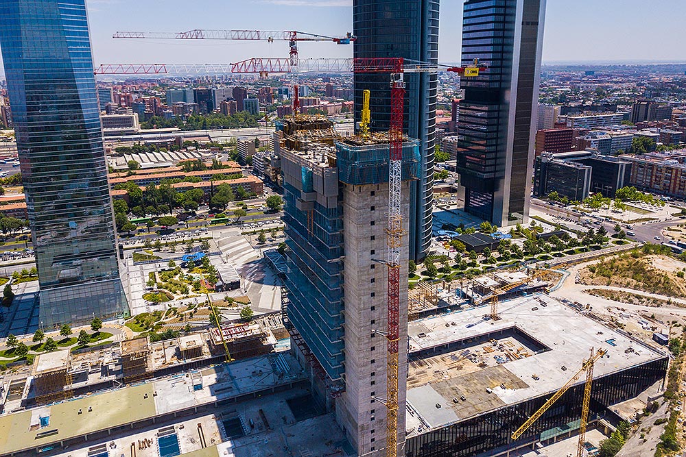 En un proyecto de esta envergadura con una superficie de más de 50.000 m² en la torre y 7 sótanos bajo rasante que suman otros 150.000 m², se han empleado 79.365 m³ de hormigón y 9.427.217 Kg de acero en su construcción.