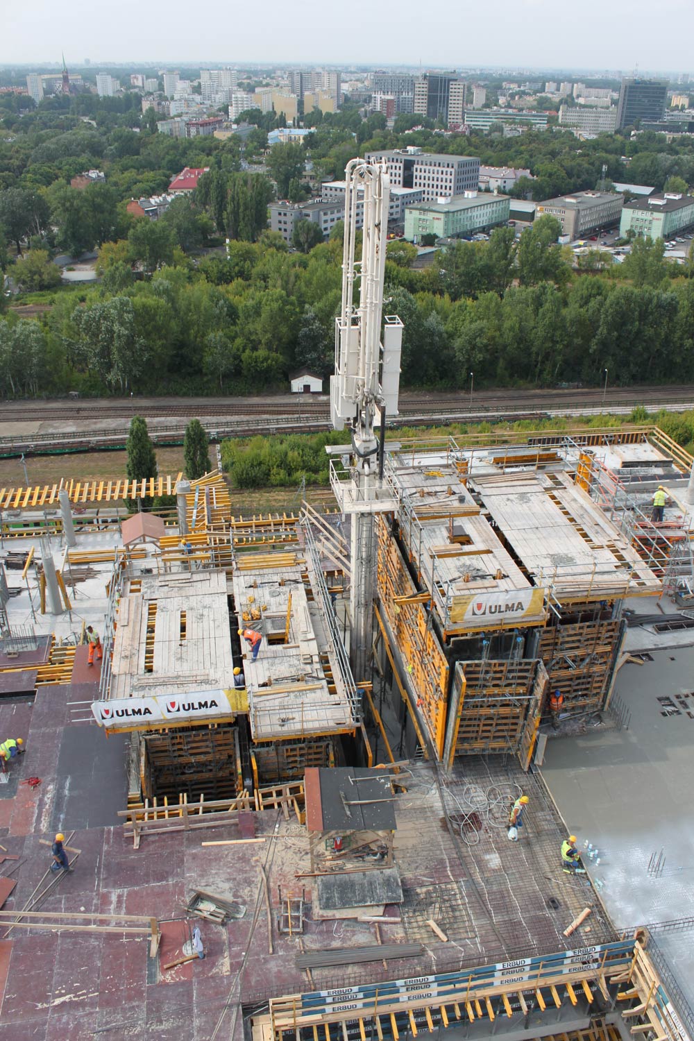 El núcleo del edificio, con dos cajas de escaleras y huecos para los ascensores, se ha construido con dos sistemas autotrepantes. Para las escaleras se han utilizado las consolas autotrepantes ATR-B y para los dos huecos de los ascensores las plataformas ATR-P. Ambos soluciones diseñadas con el sistema MK.
