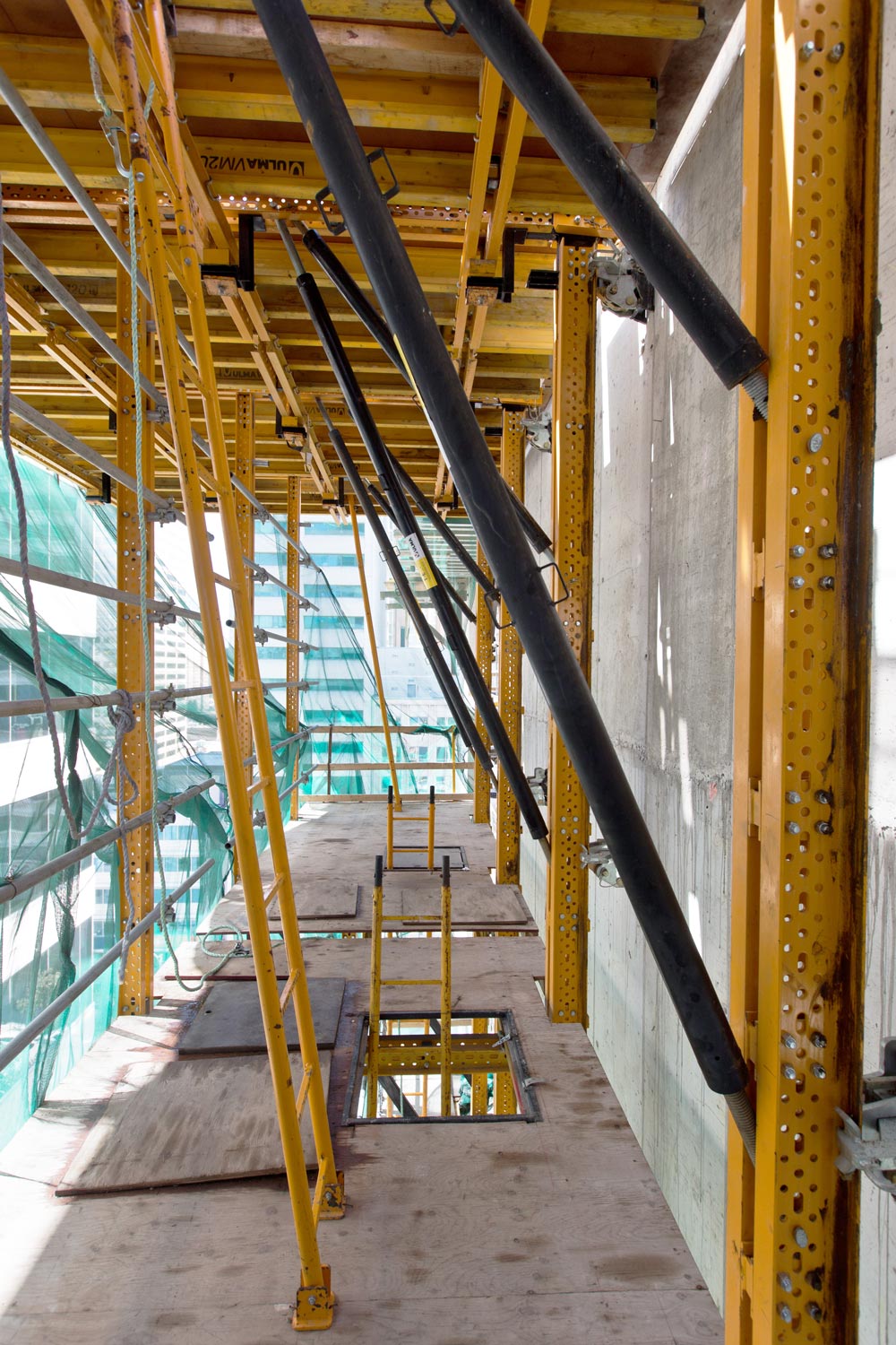ULMA puso a disposición de la obra el Sistema Trepante Guiado RKS, como plataforma para el encofrado de los muros exteriores, y la protección perimetral HWS.