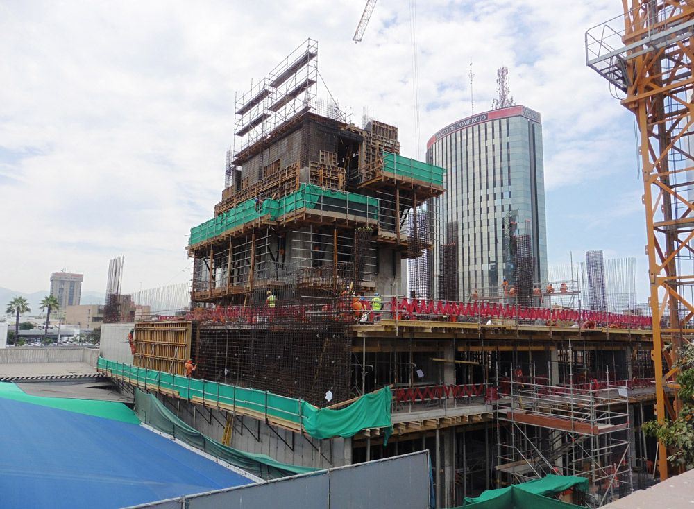 Al tratarse de un espacio destinado a albergar oficinas de tipo A+, era necesario conseguir un acabado de losa visto en amplias superficies de 854 m². Por primera vez en el país se ha empleado el encofrado modular de aluminio CC-4, capaz de ofrecer requerimientos arquitectónicos de hormigón visto. El sistema CC-4 además de piezas ligeras es recuperable. Así se ha optimizado el material ya que a los 5 días se ha empleado el mismo encofrado en las plantas superiores.