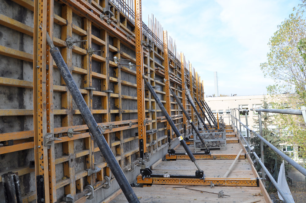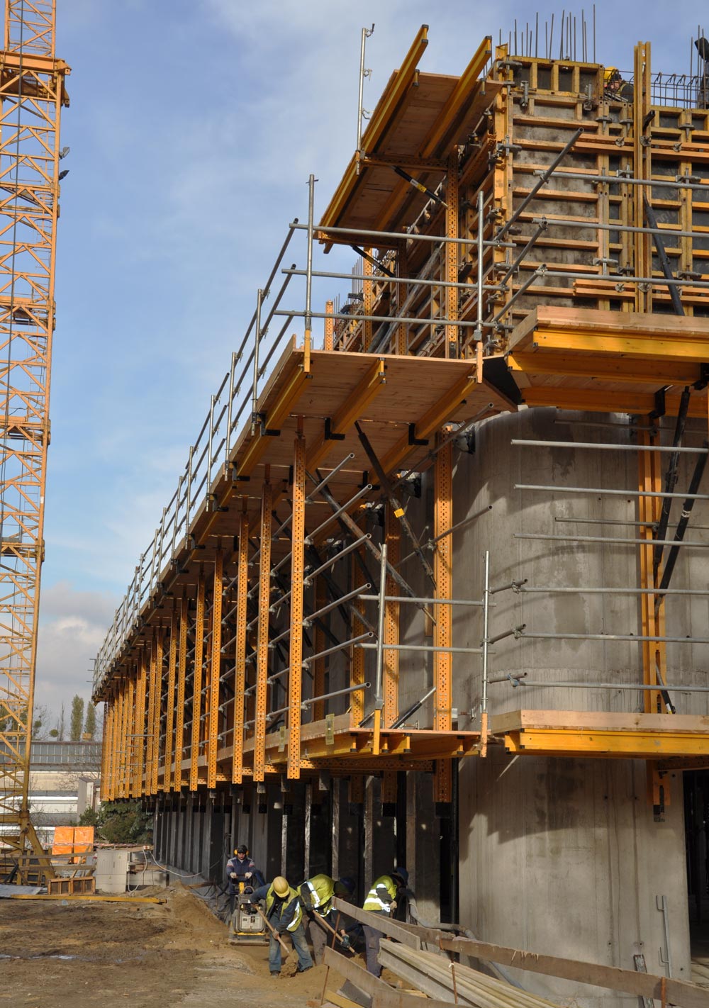 Todo el encofrado fue suministrado por ULMA. Se empleó el encofrado de aluminio CC-4 apeado con puntal europeo EP en la ejecución de las losas de 650 m2 en cada nivel.