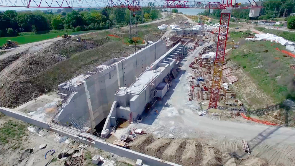 Anexa a la central eléctrica de 1962, la esclusa va a permitir recuperar la navegación entre Cremona y Piacenza hasta ahora interrumpida por el descenso del caudal.