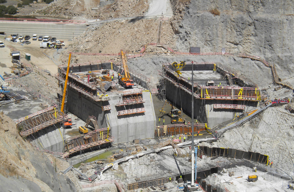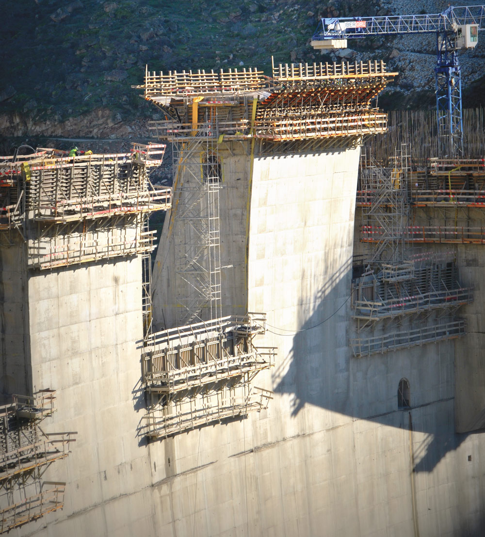 En la construcción de la presa, de 127 m de altura y 505 m de longitud, se utilizó encofrado vertical ORMA, BIRA y ENKOFORM V-100. También se emplearon consolas de trepado a una cara, suministros de cimbras, andamio multidireccional y Escalera BRIO. Se vertieron más de 860.300 m3 de hormigón.