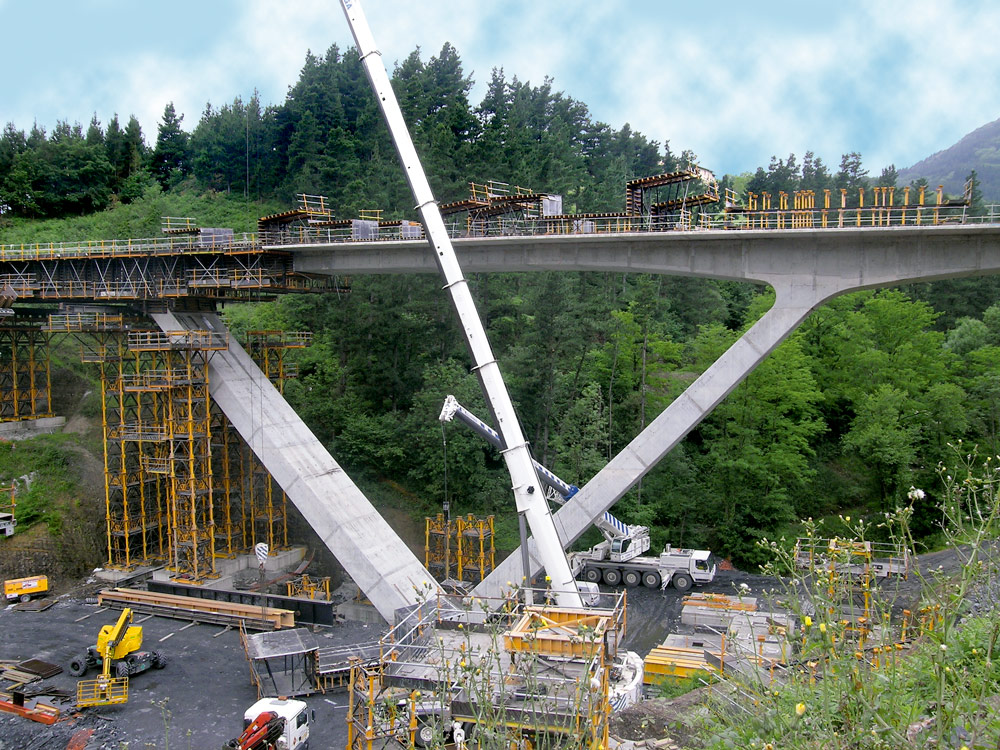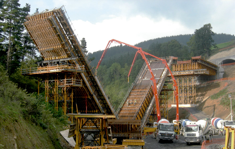 Dentro del mismo tramo de la Autopista AP-1, se realizó el montaje de la cimbra y el encofrado de los Pasos Superiores 13 y 16. La solución para ejecutar un paso de estas características se basó en el empleo del Encofrado Horizontal ENKOFORM HMK y de cimbra como sistema de apeo sobre zapatas. Además, para las zonas próximas a los estribos se optó por la solución de salvataludes, formada por una serie de perfiles laminados de gran resistencia.