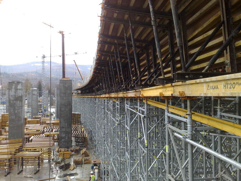 Como encofrado del tablero se empleó el sistema ENKOFORM HMK, adaptable a cualquier sección con piezas estándares. Como apoyo, la Cimbra T-60 agilizó el proceso constructivo además de transmitir las cargas con total seguridad, a más de 15 m de altura.