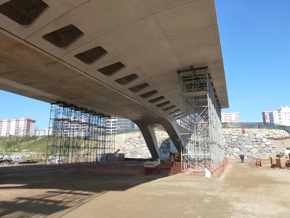 Las zonas más ligeras se apearon con la Cimbra T-60, y las más pesadas con la cimbra T-500. En la zona de estribos, el encofrado se apoyó sobre Martillos MT. Dichos estribos se ejecutaron con el encofrado vertical ORMA.