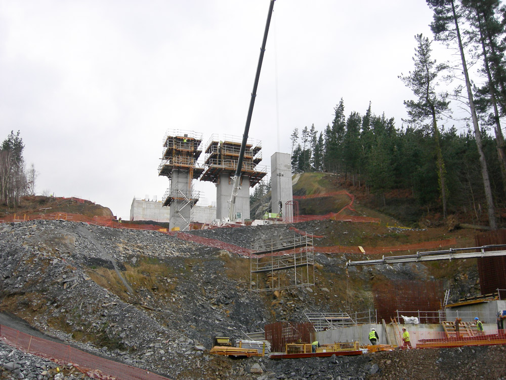 El tablero de sección cajón, con canto de 3,64 m, se ejecuta en dos fases, mediante el encofrado ENKOFORM HMK. En la primera, se realiza el fondo y los hastiales y en la segunda, el techo y las alas.
