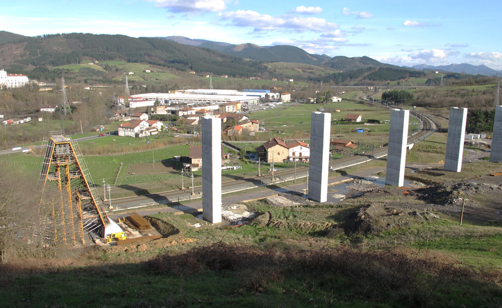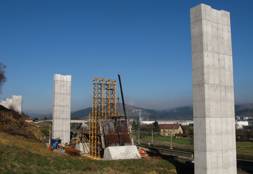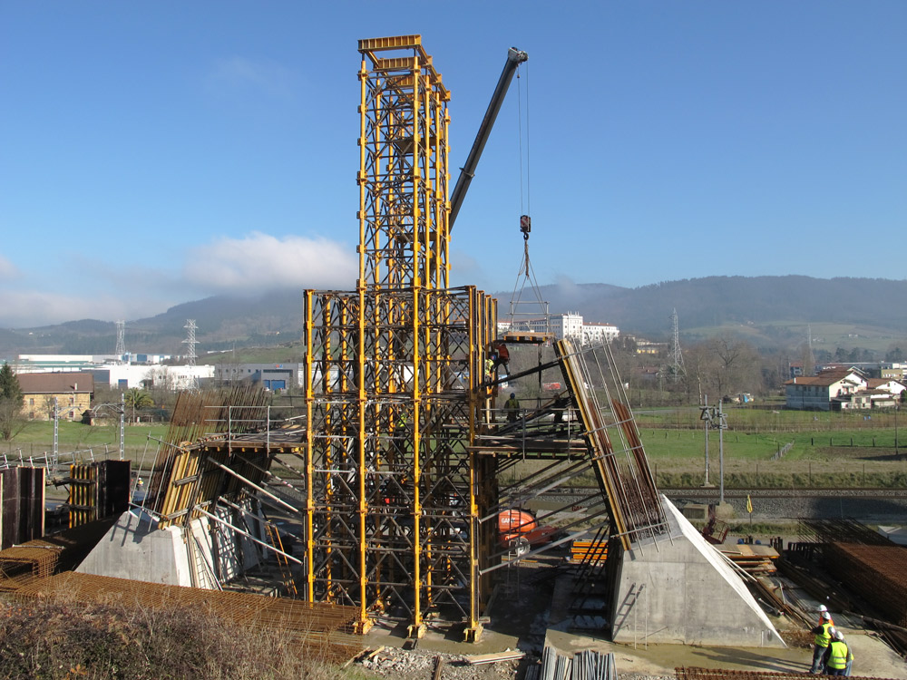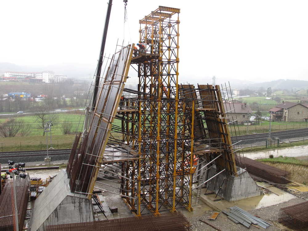 A destacar el diseño de un encofrado y un apeo optimo con material estándar, para las pilas con la inclinación importante que demanda este proyecto.