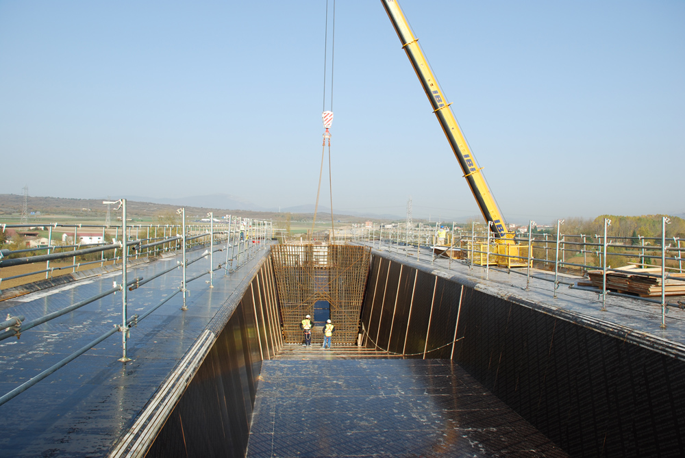 La versatilidad del sistema de Encofrado ENKOFORM H-120, constituido por riostras y vigas de segunda tramada, permitió adaptarse a las dimensiones de la sección que presenta este viaducto, además de premontar in situ todos los paños antes de su ubicación definitiva sobre los sistemas de apeo o cimbras. De esta manera se ha obtenido una solución óptima para esta obra.