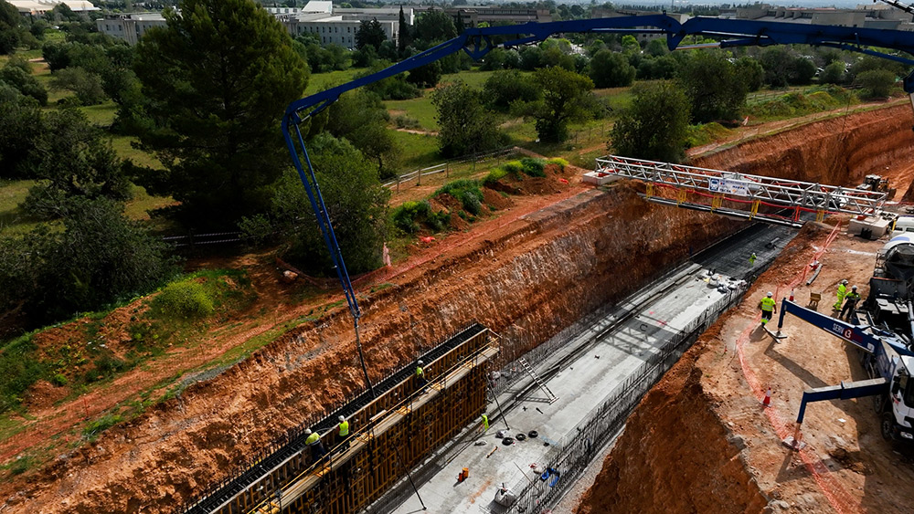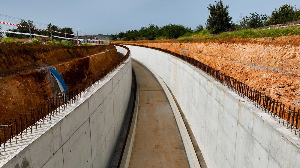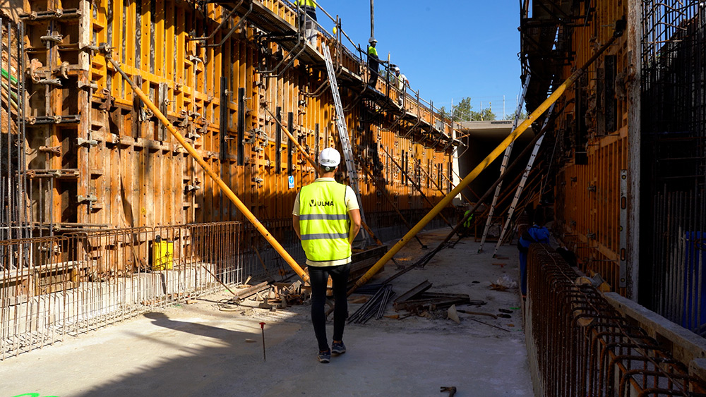 Al ser una obra de metro lineal, el sistema más utilizado en la obra ha sido el encofrado modular ORMA, casi en la totalidad de su longitud, a dos caras.