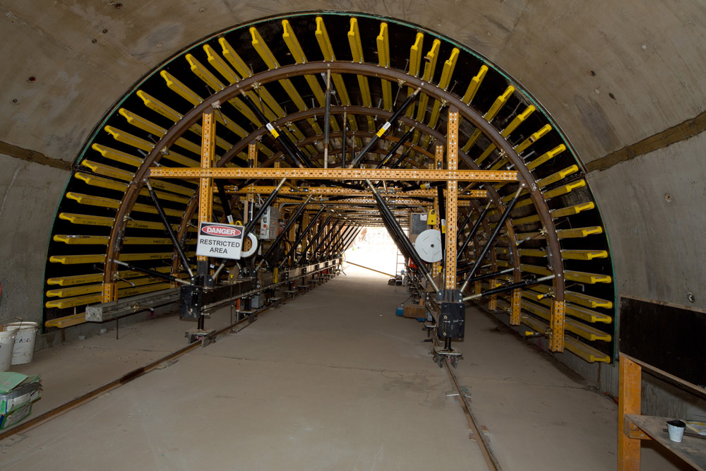Su sistema hidráulico permitió un suave desencofrado, y sus motores de accionamiento eléctrico trasladaron los carros a una velocidad de 6,2 m/minuto. El diámetro interno de los túneles fue de 6,5 m, con espesores de muro variable de entre 37,5 cm (parte más alta) y 70 cm en la parte baja de los hastiales.
