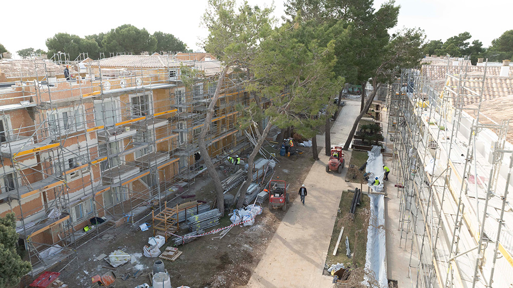 Las obras de reforma, realizadas por TOCOSA, Jai Jai Covers y Hard Skill Andamios, han implicado la mejora de las fachadas, cubiertas y terrazas del complejo, para lo cual fue necesario un total de 28.000 m² de andamio combinando los sistemas BRIO y DORPA, que ofrecen una integración perfecta entre ellos garantizando tanto la seguridad como la versatilidad necesaria para adaptarse a los diferentes requisitos de la obra.