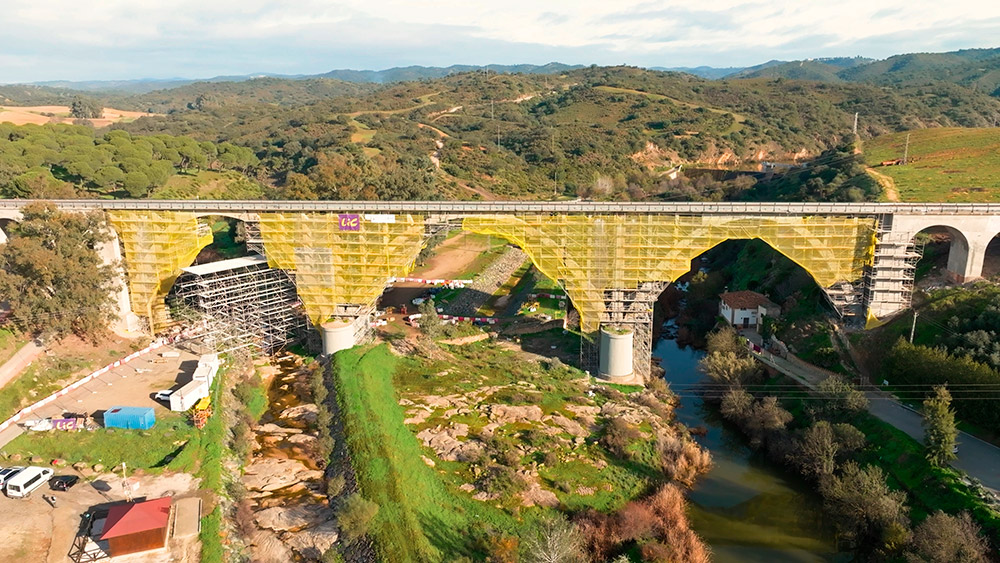 Precisamente, ese ha sido uno de los desafíos en la ejecución del proyecto. Otro desafío ha sido el montaje de todo el andamiaje desde un estribo hasta el otro del puente, para poder acceder a la totalidad de los paramentos para su reparación.