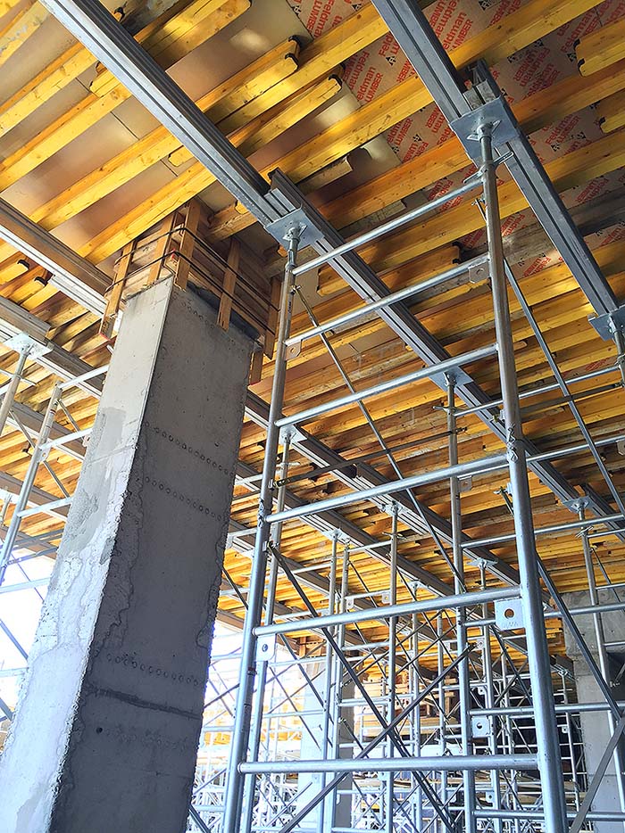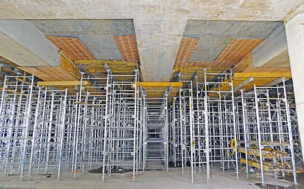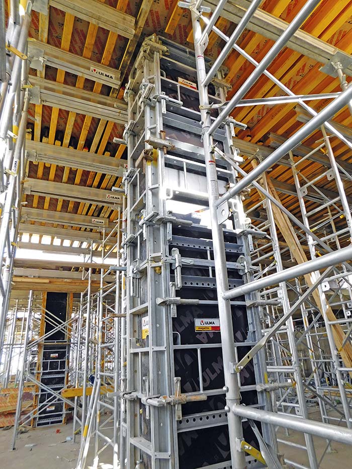En esta clase de proyectos compuestos por varios tipos de edificios requieren de sistemas de encofrados y apeos versátiles, fáciles/sencillos y rápidos de montar. ULMA ha suministrado ambos tipos de sistemas para la zona comercial, el hotel y el parking.