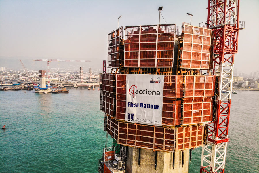 El proyecto consta de dos pilonos octogonales, variable a todas las caras, y 150 metros de altura. El sistema autotrepante ATR no solo ha solventado la altura y la geometría de los pilonos si no que se ha adaptado a la presencia de una cruz ornamental metálica de 50 m de altura embebida en el hormigón, homenaje a la llegada de Magallanes a Cebú.  Asimismo, la flexibilidad del sistema ha permitido que se adecuara a la presencia de los cajones de atirantado, embebidos en el muro, durante el proceso de hormigonado. Una interferencia importante en el interior de los pilonos durante la Fase 3 prevista también en el diseño inicial de la solución. El empleo de este sistema ha permitido disponer la grúa para otros trabajos auxiliares, como el de ferrallado.