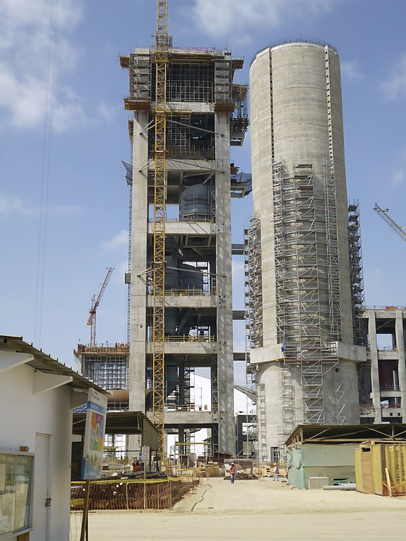 ULMA ha suministrado a la obra equipos y sistemas para la construcción de silos, tolvas, almacenes, edificios de procesado, así como para los accesos dentro de la planta.