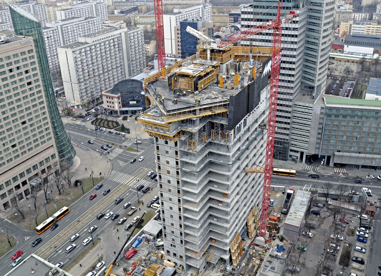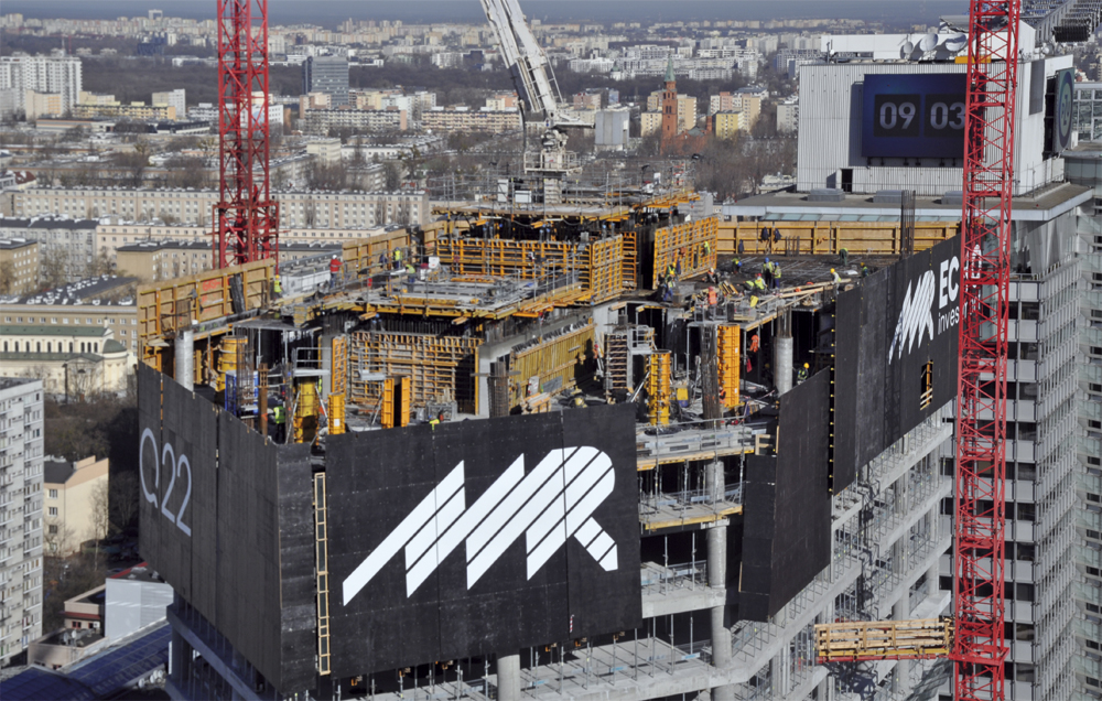 En el centro de la capital polaca se alza la torre Q22, uno de los rascacielos más altos de Polonia. Con 155 m de altura, este edificio de oficinas contará con 47 plantas, 5 de ellas bajo rasante.