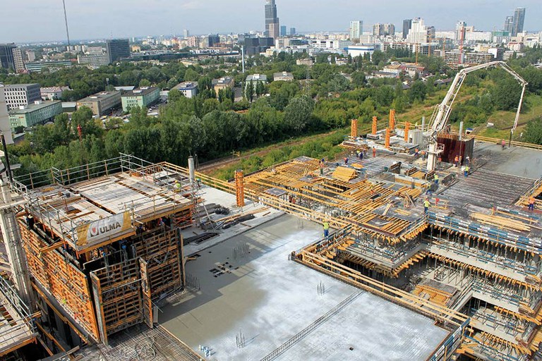 Gracias a los sistemas autotrepantes se ha realizado una rápida ejecución de los dos núcleos del Complejo EuroCentrum en Polonia.